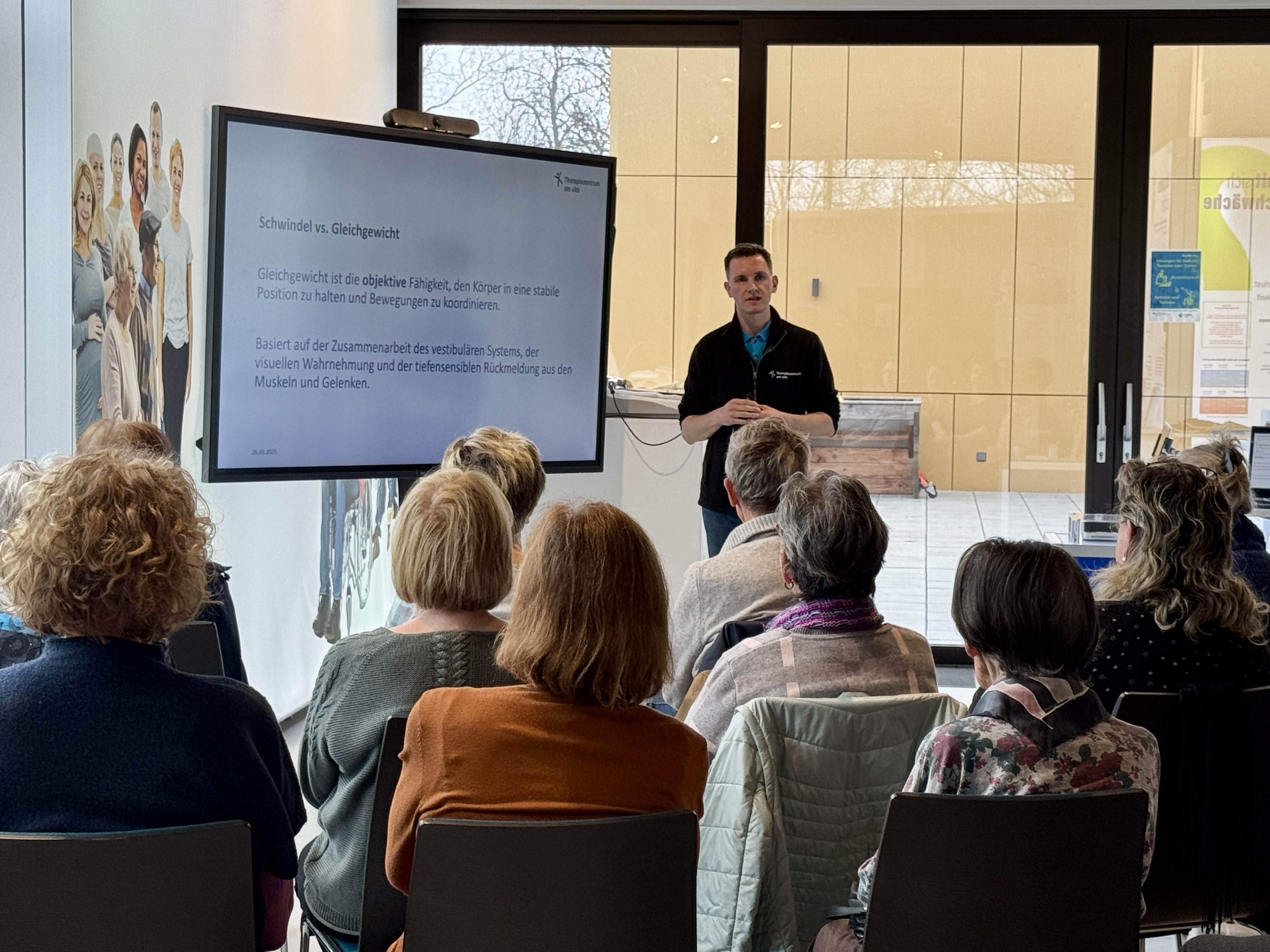 Schwindel und Gleichgewichtsstörungen Referent / Unternehmen: Therapiezentrum am ukb Schwindel und Gleichgewichtsstörungen gehören zu den häufigsten Ursachen für Unsicherheit im Alltag – etwa beim Aufstehen, Treppensteigen oder Gehen auf unebenem Untergrund. In diesem Vortrag gibt Florian Liebert vom Therapiezetrum am ukb einen verständlichen Überblick über mögliche Ursachen und zeigt anhand kurzer Alltagsbeispiele, wie sich Gleichgewicht trainieren lässt. |
