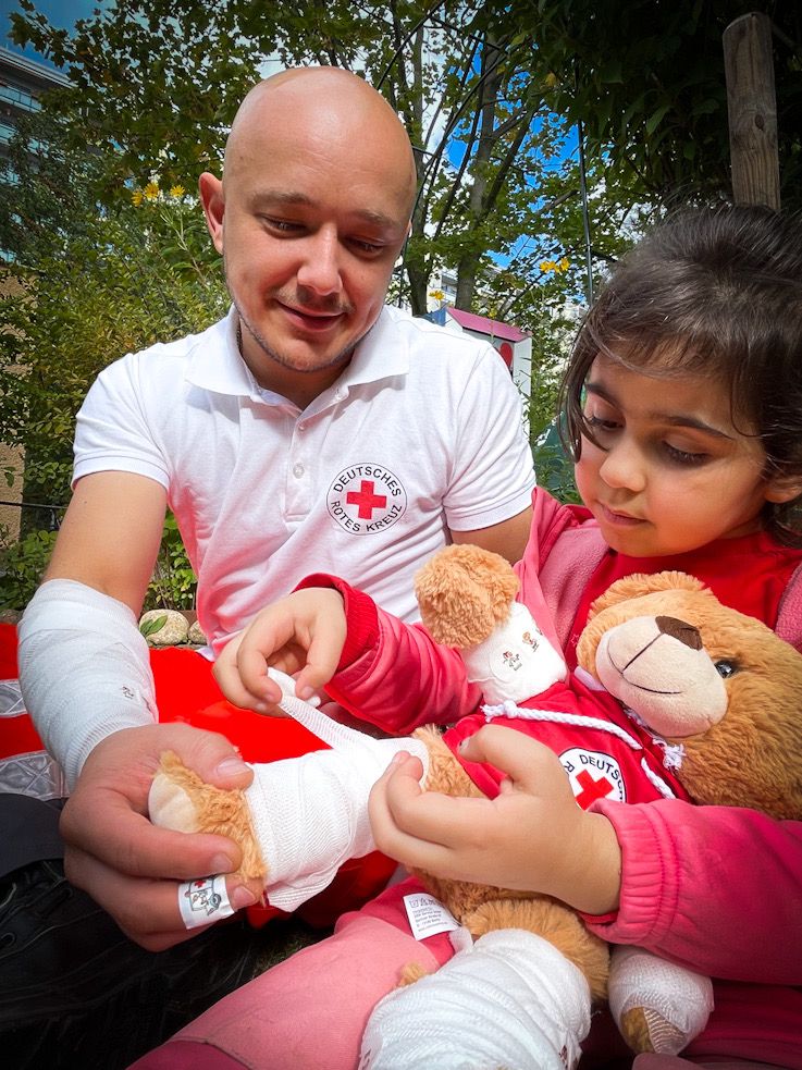 Erste Hilfe kinderleicht Referent / Unternehmen: DRK Kreisverband Berlin-Nordost e. V. An unserem Stand lernen Kinder den ersten Umgang mit Notfallsituationen: Notrufnummer kennen und merken, einen Notruf richtig absetzen, Verbandskasten kennenlernen und einfache Wundversorgung üben. Mit dem Projekt „Rette sich, wer helfen will! – Erste Hilfe mit Spaßfaktor“ wollen wir Kindern und Jugendlichen eine Bühne geben, um zu zeigen, dass sie Leben retten können. Da Erste Hilfe in Berlin nicht verpflichtend im Schulalltag verankert ist, schließt das Projekt eine wichtige Lücke. Jede und jeder kann helfen. |