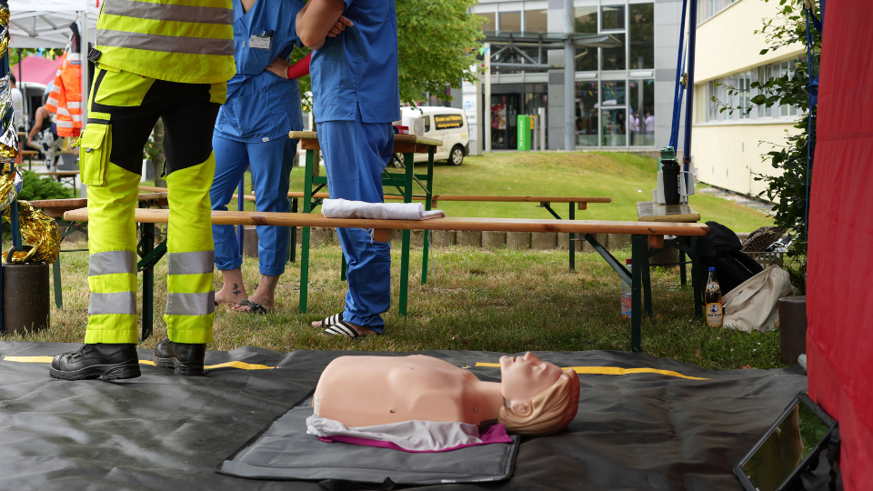 Leben retten – Mitmachen und Ausprobieren Referent / Unternehmen: Rettungsdienst im Landkreis Oder-Spree GmbH Was tun bei Herzstillstand? Wie funktioniert eine Laienreanimation? Worauf muss ich achten? Erfahrene Notfallsanitätern und Auszubildende des Rettungsdienstes im Landkreis Oder-Spree zeigen Schritt für Schritt, wie Wiederbelebung funktioniert – anschaulich demonstriert an Übungspuppen vom Säugling bis zum Erwachsenen. Erfahren Sie, wie einfach Erste Hilfe sein kann und wie jede Sekunde zählt. Frei nach dem Motto: „Jeder kann Leben retten!“ |