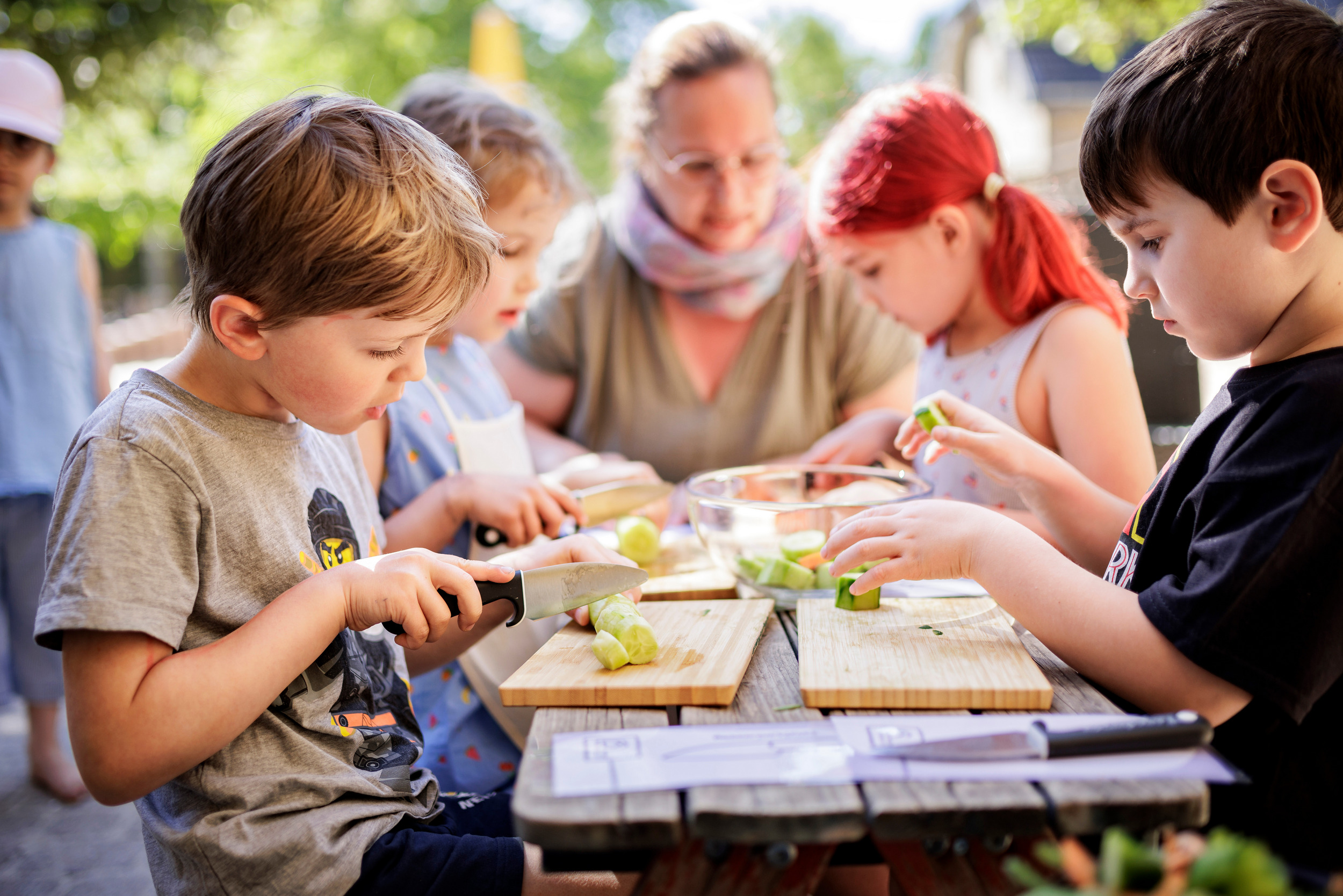 10:00 bis 15:00 Uhr Kinder lernen essen Kinder Mitmachaktion Stand: Marktstand draußen