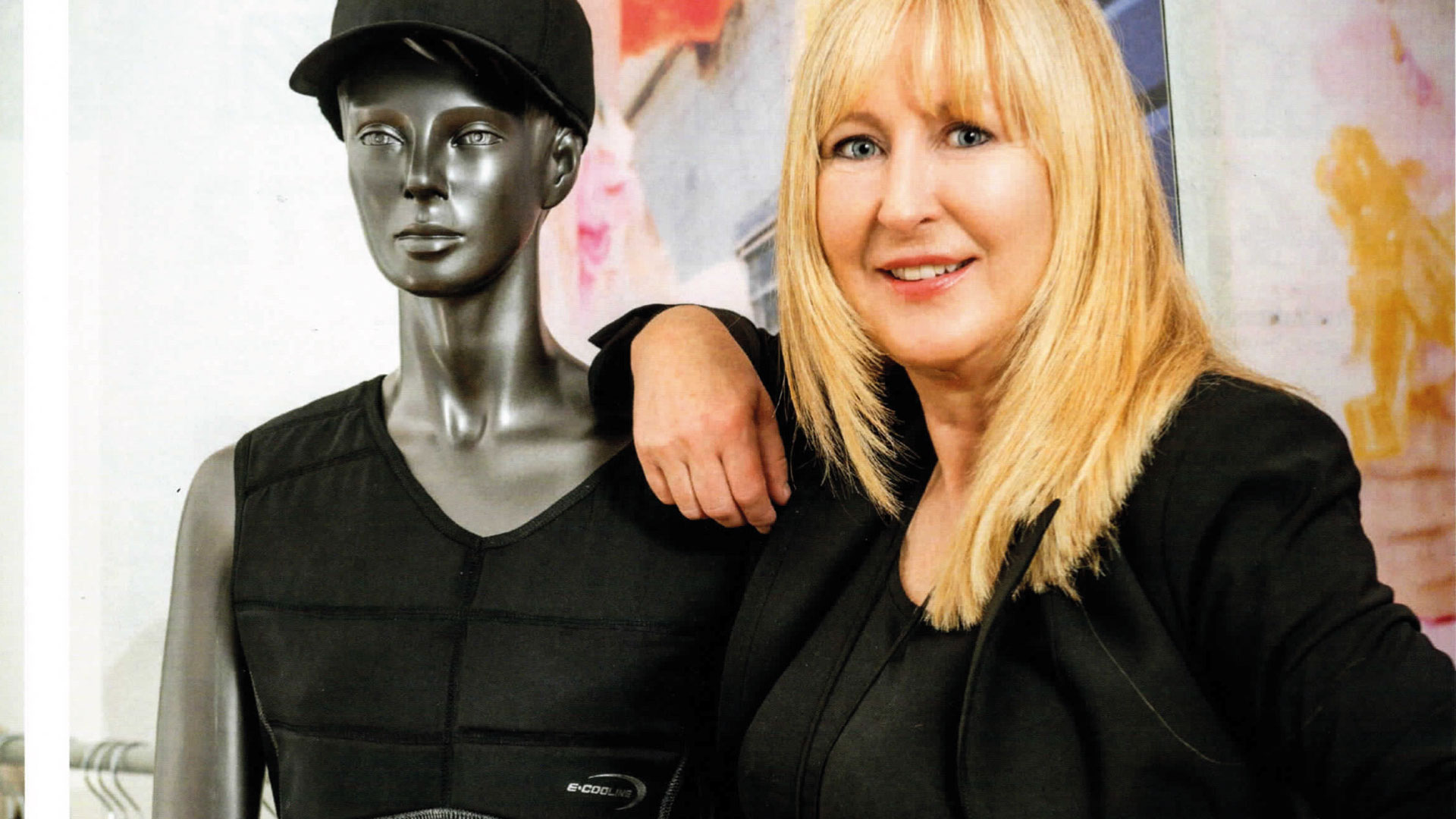 Gabriele Renner, Apothekerin und Geschäftsführerin der Pervormance international GmbH, zeigt in ihrem Vortrag, wie man sich an heißen Tagen effektiv schützen kann – unter anderem mit moderner Kühlkleidung. |