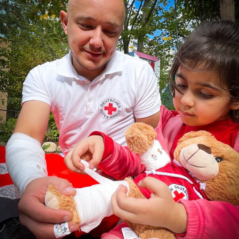 Erste Hilfe kinderleicht Referent / Unternehmen: DRK Kreisverband Berlin-Nordost e. V. An unserem Stand lernen Kinder den ersten Umgang mit Notfallsituationen: Notrufnummer kennen und merken, einen Notruf richtig absetzen, Verbandskasten kennenlernen und einfache Wundversorgung üben. Mit dem Projekt „Rette sich, wer helfen will! – Erste Hilfe mit Spaßfaktor“ wollen wir Kindern und Jugendlichen eine Bühne geben, um zu zeigen, dass sie Leben retten können. Da Erste Hilfe in Berlin nicht verpflichtend im Schulalltag verankert ist, schließt das Projekt eine wichtige Lücke. Jede und jeder kann helfen. |