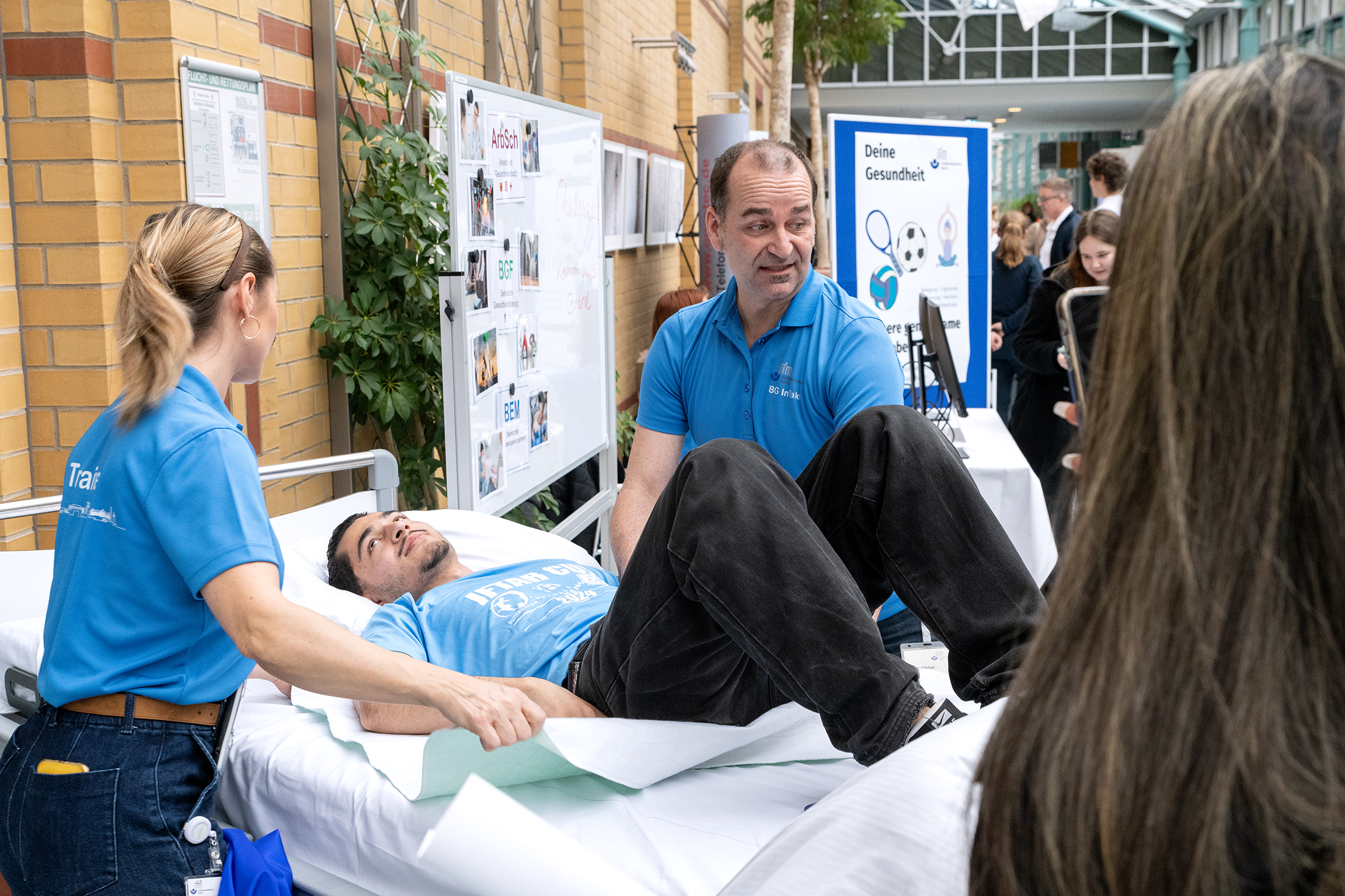 Gesundheitscheck Referent / Unternehmen: BG Klinikum Unfallkrankenhaus Berlin Die Auszubildenden des Unfallkrankenhaus Berlin bieten kostenfreie Gesundheitschecks an, darunter Messungen von Herzfrequenz, Blutdruck und Sauerstoffsättigung (SpO₂). Dabei informieren sie auch über Risikofaktoren und präventive Gesundheitsmaßnahmen und geben alltagsnahe Tipps für die eigene Gesundheit. |